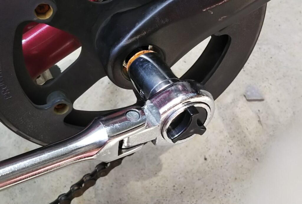 クランクキャップを外すとナットが露出します。これをラチェットで外します。